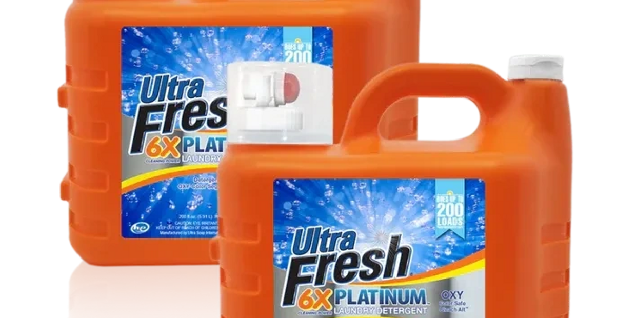 Ultra Fresh® Platinum™ OXY Bleach Alternative™ 6X Laundry Detergent works as hard as bleach to eliminate stains but is safe for all washable colored fabrics. Now available in this large convenient jug with a handle, a measuring cap, and easy pouring spigot. It whitens, brightens, cleans, removes stains, and freshens. Deep cleaning power. Concentrated to do up to 200 loads. May be used in standard or HE machines. Safe for septic systems when used as directed.